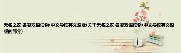 本文关于无名之家 名著双语读物·中文导读英文原版的简介就讲解完毕,希望对大家有所帮助。