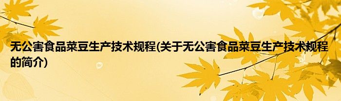 大家好,无公害食品菜豆生产技术规程,关于无公害食品菜豆生产技术规程的简介很多人还不知道,现在让我们一起来看看吧!