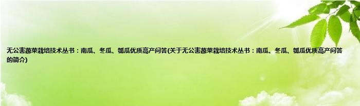 本文关于无公害蔬菜栽培技术丛书:南瓜、冬瓜、瓠瓜优质高产问答的简介就讲解完毕,希望对大家有所帮助。