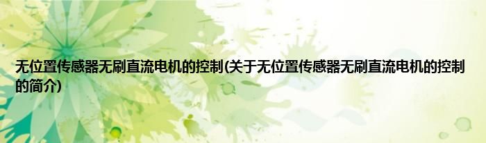 本文关于无位置传感器无刷直流电机的控制的简介就讲解完毕,希望对大家有所帮助。
