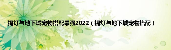 大家好,精选小编来为大家解答以上问题。提灯与地下城宠物搭配最强2022,提灯与地下城宠物搭配很多人还不知道,现在让我们一起来看看吧!