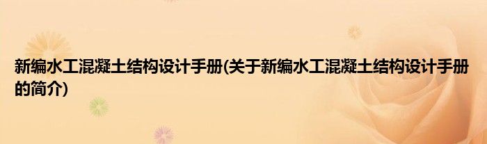 大家好,新编水工混凝土结构设计手册,关于新编水工混凝土结构设计手册的简介很多人还不知道,现在让我们一起来看看吧!
