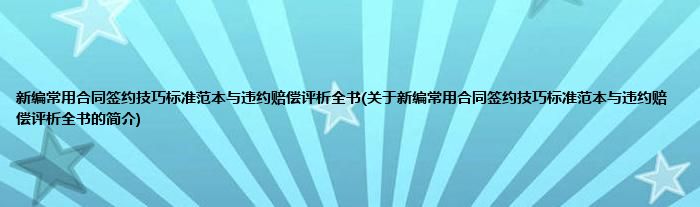 本文关于新编常用合同签约技巧标准范本与违约赔偿评析全书的简介就讲解完毕,希望对大家有所帮助。