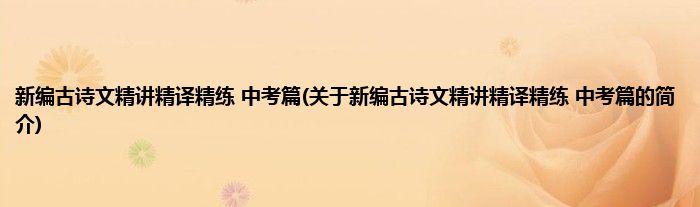大家好,新编古诗文精讲精译精练 中考篇,关于新编古诗文精讲精译精练 中考篇的简介很多人还不知道,现在让我们一起来看看吧!