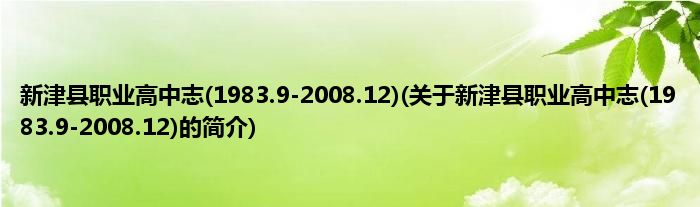 本文关于新津县职业高中志(1983.9-2008.12)的简介就讲解完毕,希望对大家有所帮助。