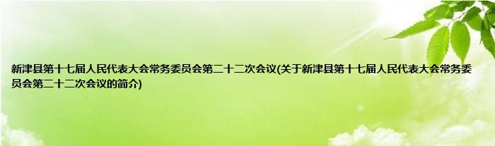 本文关于新津县第十七届人民代表大会常务委员会第二十二次会议的简介就讲解完毕,希望对大家有所帮助。