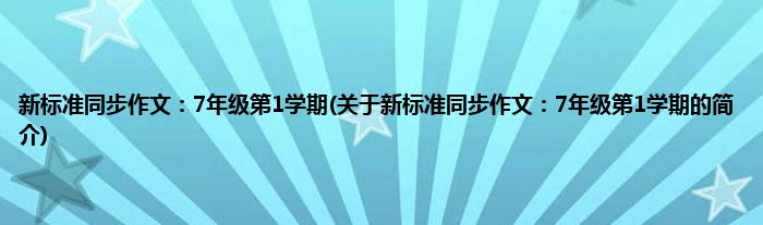 本文关于新标准同步作文:7年级第1学期的简介就讲解完毕,希望对大家有所帮助。