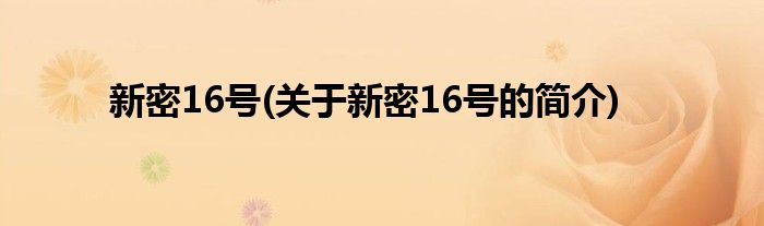 本文关于新密16号的简介就讲解完毕,希望对大家有所帮助。