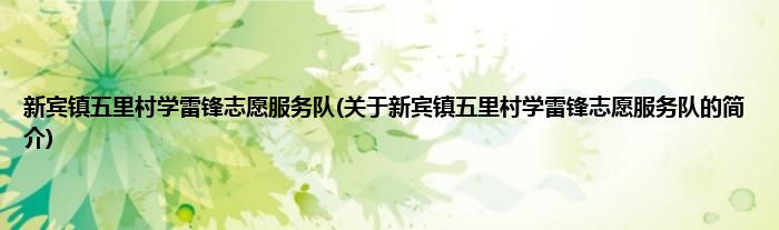 1、 新宾镇五里村学雷锋志愿服务队是由新宾镇学雷锋志愿者协会领导下的志愿团体。