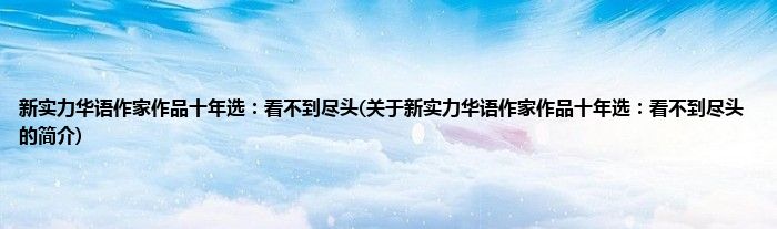 本文关于新实力华语作家作品十年选:看不到尽头的简介就讲解完毕,希望对大家有所帮助。