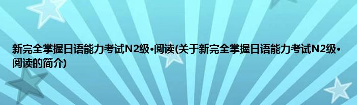 本文关于新完全掌握日语能力考试N2级·阅读的简介就讲解完毕,希望对大家有所帮助。