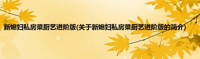 本文关于新媳妇私房菜厨艺进阶版的简介就讲解完毕,希望对大家有所帮助。