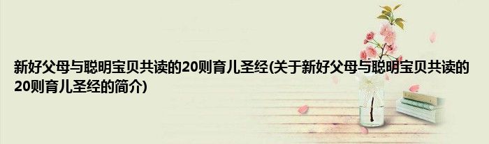 本文关于新好父母与聪明宝贝共读的20则育儿圣经的简介就讲解完毕,希望对大家有所帮助。