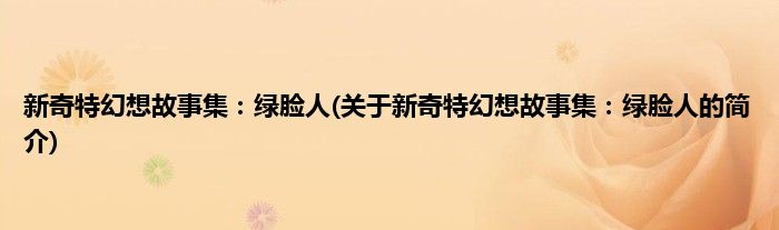 本文关于新奇特幻想故事集:绿脸人的简介就讲解完毕,希望对大家有所帮助。