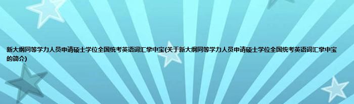 本文关于新大纲同等学力人员申请硕士学位全国统考英语词汇掌中宝的简介就讲解完毕,希望对大家有所帮助。