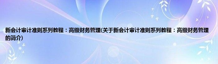 本文关于新会计审计准则系列教程:高级财务管理的简介就讲解完毕,希望对大家有所帮助。
