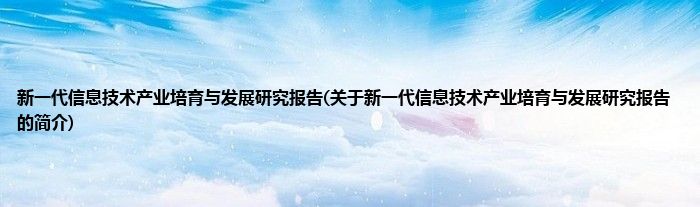 新一代信息技术产业培育与发展研究报告(关于新一代信息技术产业培育与发展研究报告的简介)
