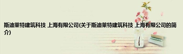 本文关于斯迪莱特建筑科技 上海有限公司的简介就讲解完毕,希望对大家有所帮助。