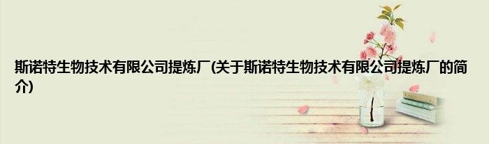 本文关于斯诺特生物技术有限公司提炼厂的简介就讲解完毕,希望对大家有所帮助。