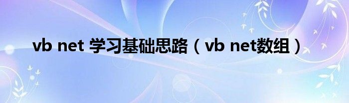 大家好,精选小编来为大家解答以上问题。vb net 学习基础思路,vb net数组很多人还不知道,现在让我们一起来看看吧!
