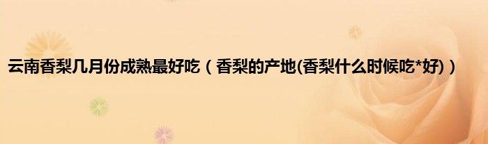 大家好,小科来为大家解答以上问题。云南香梨几月份成熟最好吃,香梨的产地(香梨什么时候吃*好)很多人还不知道,现在让我们一起来看看吧!