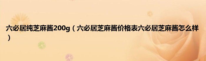 大家好,小科来为大家解答以上问题。六必居纯芝麻酱200g,六必居芝麻酱价格表六必居芝麻酱怎么样很多人还不知道,现在让我们一起来看看吧!