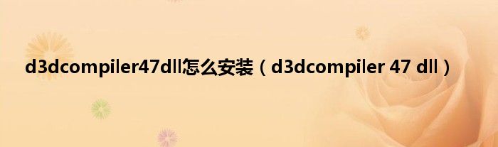 大家好,精选小编来为大家解答以上问题。d3dcompiler47dll怎么安装,d3dcompiler 47 dll很多人还不知道,现在让我们一起来看看吧!