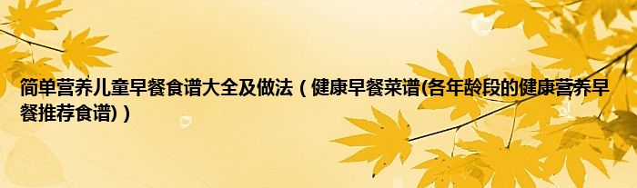 大家好,小科来为大家解答以上问题。简单营养儿童早餐食谱大全及做法,健康早餐菜谱(各年龄段的健康营养早餐推荐食谱)很多人还不知道,现在让我们一起来看看吧!