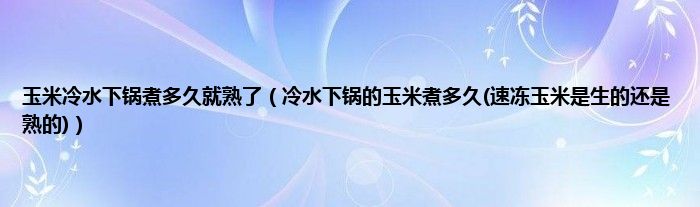 大家好,小科来为大家解答以上问题。玉米冷水下锅煮多久就熟了,冷水下锅的玉米煮多久(速冻玉米是生的还是熟的)很多人还不知道,现在让我们一起来看看吧!