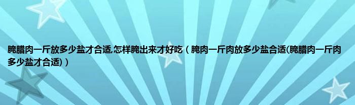 大家好,小科来为大家解答以上问题。腌腊肉一斤放多少盐才合适,怎样腌出来才好吃,腌肉一斤肉放多少盐合适(腌腊肉一斤肉多少盐才合适)很多人还不知道,现在让我们一起来看看吧!