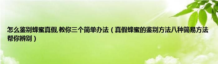 大家好,小科来为大家解答以上问题。怎么鉴别蜂蜜真假,教你三个简单办法,真假蜂蜜的鉴别方法八种简易方法帮你辨别很多人还不知道,现在让我们一起来看看吧!