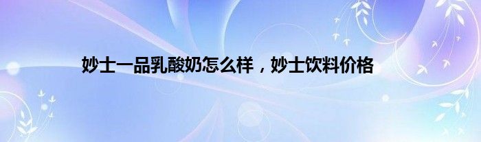 妙士一品乳酸奶怎么样,妙士饮料价格