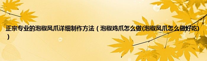 大家好,小科来为大家解答以上问题。正宗专业的泡椒凤爪详细制作方法,泡椒鸡爪怎么做(泡椒凤爪怎么做好吃)很多人还不知道,现在让我们一起来看看吧!