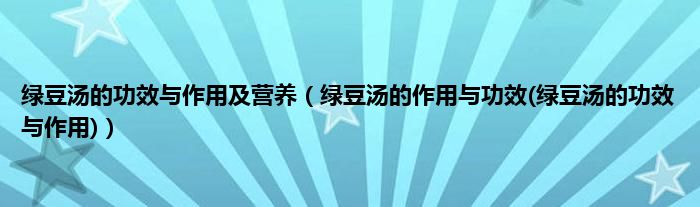 绿豆汤的功效与作用及营养(绿豆汤的作用与功效(绿豆汤的功效与作用))