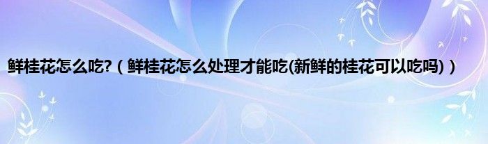 如果着急,一定要简单处理后才能吃。可以将清洗干净的鲜桂花用布包好,挤出桂花的水分,加入适量的白糖,拌匀,然后放入玻璃杯中,压紧密封,腌制4天以上,取出食用。