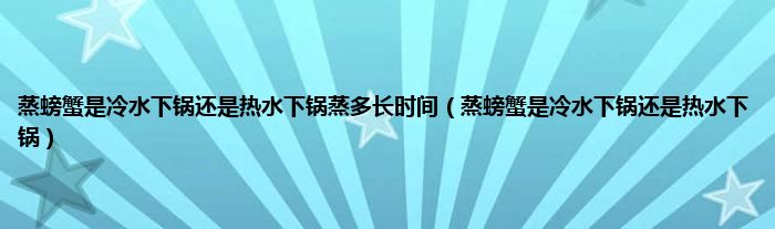 大家好,小科来为大家解答以上问题。蒸螃蟹是冷水下锅还是热水下锅蒸多长时间,蒸螃蟹是冷水下锅还是热水下锅很多人还不知道,现在让我们一起来看看吧!