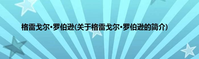 本文关于格雷戈尔·罗伯逊的简介就讲解完毕,希望对大家有所帮助。