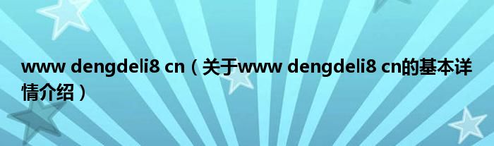 本文关于www dengdeli8 cn的基本详情介绍就讲解完毕,希望对大家有所帮助。