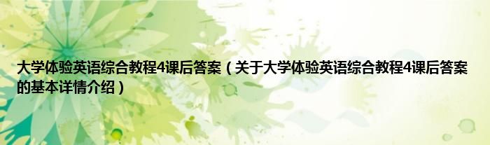 本文关于大学体验英语综合教程4课后答案的基本详情介绍就讲解完毕,希望对大家有所帮助。
