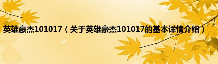 本文关于英雄豪杰101017的基本详情介绍就讲解完毕,希望对大家有所帮助。