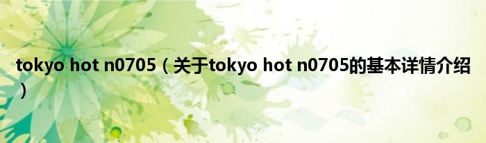本文关于tokyo hot n0705的基本详情介绍就讲解完毕,希望对大家有所帮助。