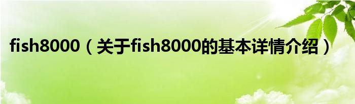 本文关于fish8000的基本详情介绍就讲解完毕,希望对大家有所帮助。