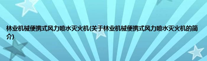 本文关于林业机械便携式风力喷水灭火机的简介就讲解完毕,希望对大家有所帮助。