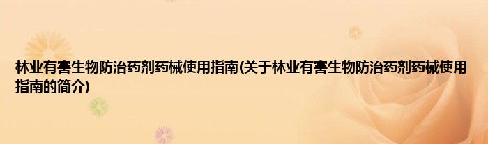 本文关于林业有害生物防治药剂药械使用指南的简介就讲解完毕,希望对大家有所帮助。