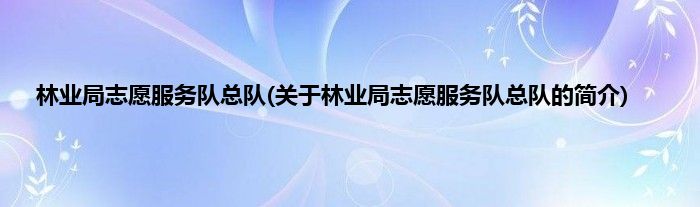 本文关于林业局志愿服务队总队的简介就讲解完毕,希望对大家有所帮助。