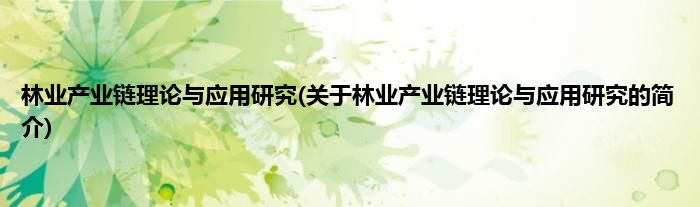 本文关于林业产业链理论与应用研究的简介就讲解完毕,希望对大家有所帮助。