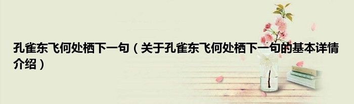 本文关于孔雀东飞何处栖下一句的基本详情介绍就讲解完毕,希望对大家有所帮助。