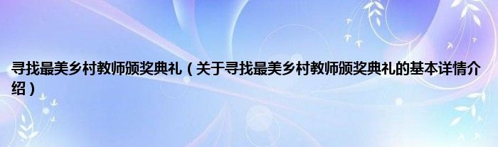 本文关于寻找最美乡村教师颁奖典礼的基本详情介绍就讲解完毕,希望对大家有所帮助。