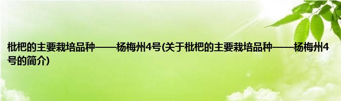 本文关于枇杷的主要栽培品种——杨梅州4号的简介就讲解完毕,希望对大家有所帮助。