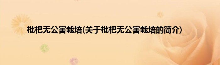 本文关于枇杷无公害栽培的简介就讲解完毕,希望对大家有所帮助。
